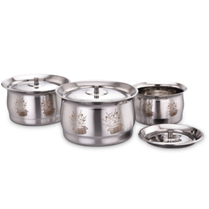 Crafted Excellence: Introducing the Bikaneri Handi Kitchen Steel, meticulously crafted in Chennai from high-quality 20-gauge stainless steel. This handi is designed to deliver exceptional durability and performance in your kitchen.
