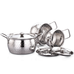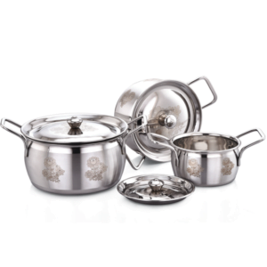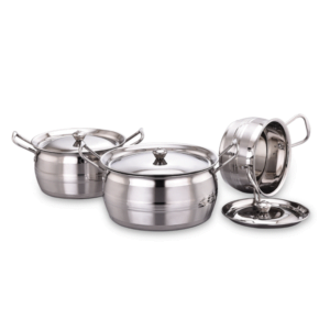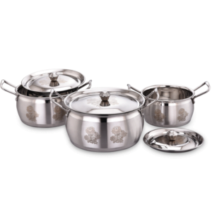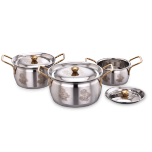 Elevate your kitchenware collection with the Flingo Kitchen Stainless Steel Handi Set, combining style, durability, and practicality for a superior cooking and dining experience.