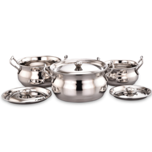 Elevate your kitchenware collection with the Litchee Kitchen Stainless Steel Handi Set, combining style, durability, and practicality for a superior cooking and dining experience.